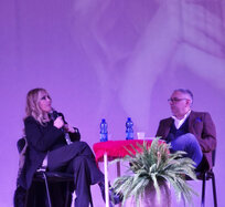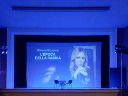 Roberta Bruzzone in collegamento con la trasmissione Quarto Grado dal palco della Fondazione Teatro Sociale di Sannazzaro de' Burgondi